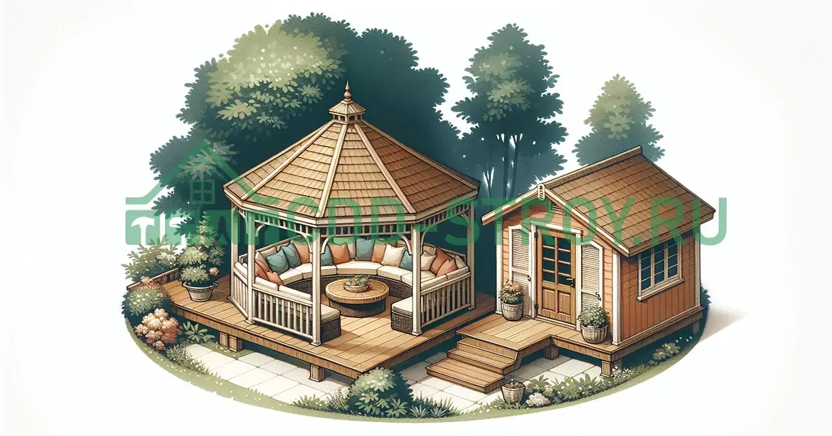 Беседка с хозблоком — это конструкция, которая сочетает в себе уютное место для отдыха и практичное пространство для хранения садового инвентаря или других необходимых вещей. Это идеальное решение для тех, кто ценит порядок и функциональность.