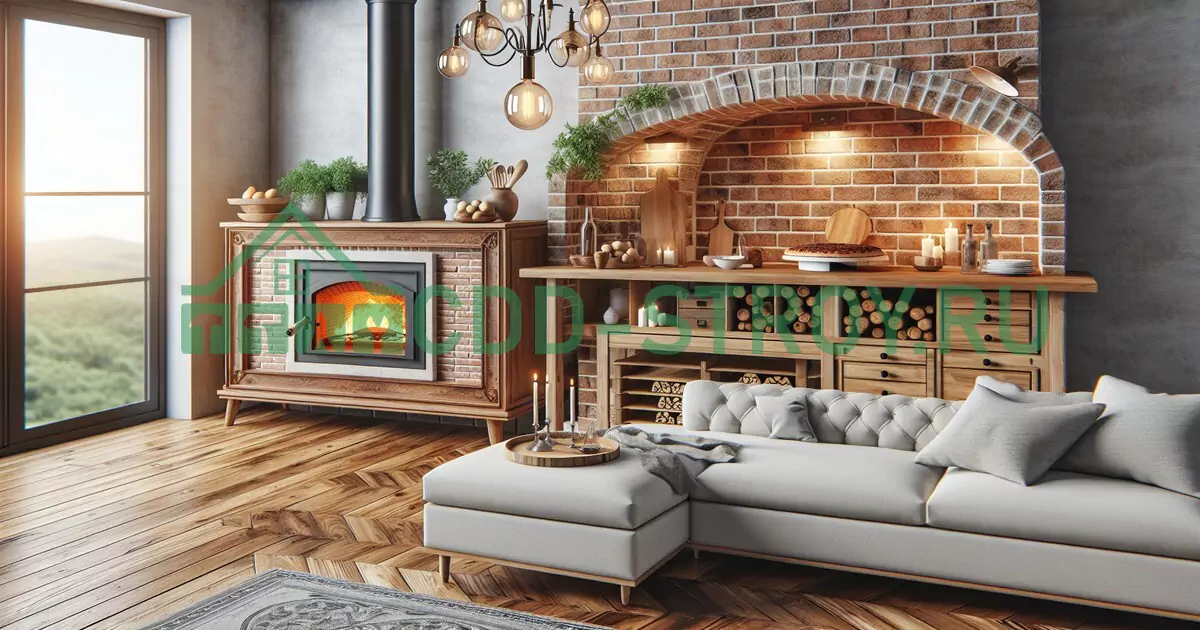 Печь из кирпича — это не просто красивый элемент интерьера. Это источник тепла, который может служить годами. Она экономична, так как кирпич хорошо сохраняет тепло, и теплота от одной загрузки дров может сохраняться до 12 часов.